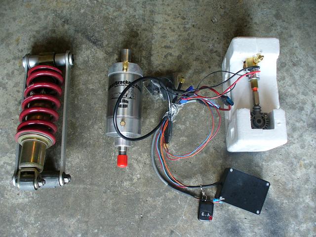 Here's the kit next to the shock assembly. I was a bit concerned because I didn't see the clevis (the U=shaped piece that bolts to the relay arm). |