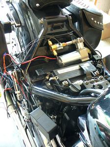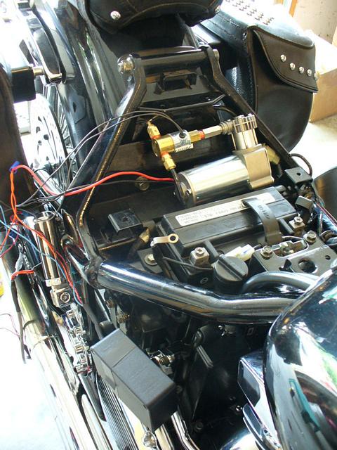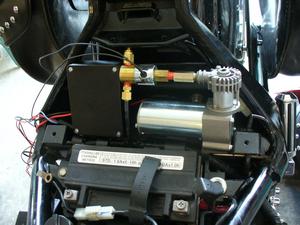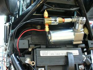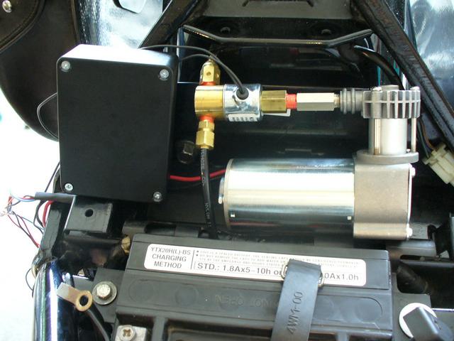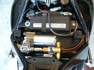 The air compressor mounts under your seat where your tool kit normally sits. You do lose the space for the tool kit when doing this mod!