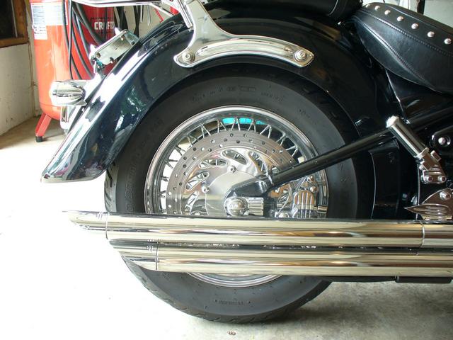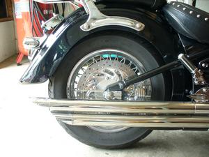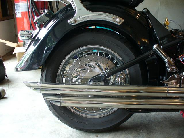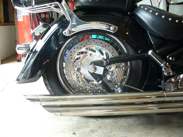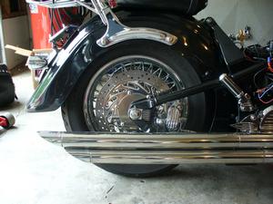 This is where I've left the set-up for now. It's working out pretty good. I gave it a thorough run-through the following weekend riding four days in the Smoky Mountains and Blue Ridge Parkway. Even lowered, the ride is nice and firm. I can have it adjusted to the same level as when I had the stock shock and the "flip", but now, my bottoming out and scraping pipes/frame is almost nill compared to before. After riding about 500 miles on the set-up, my wife has no issues with the ride at all!