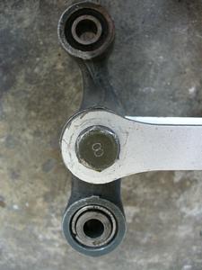 This photo just shows the geometry of how the relay arm looks when "flipped". Note how the upper portion curves toward the rear of the bike (to the left).